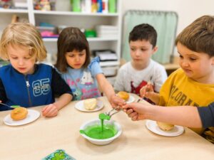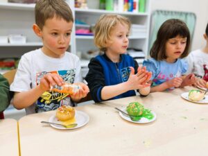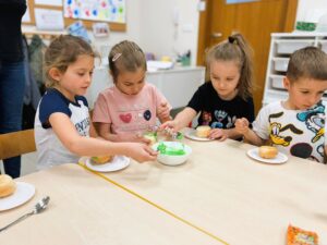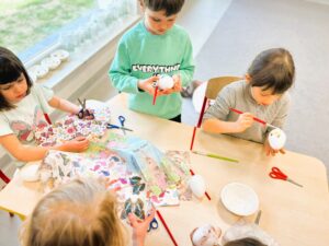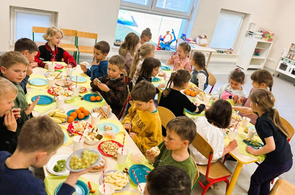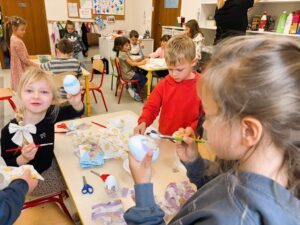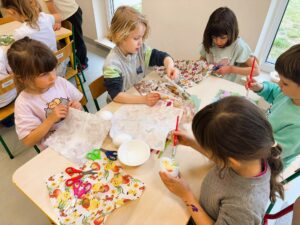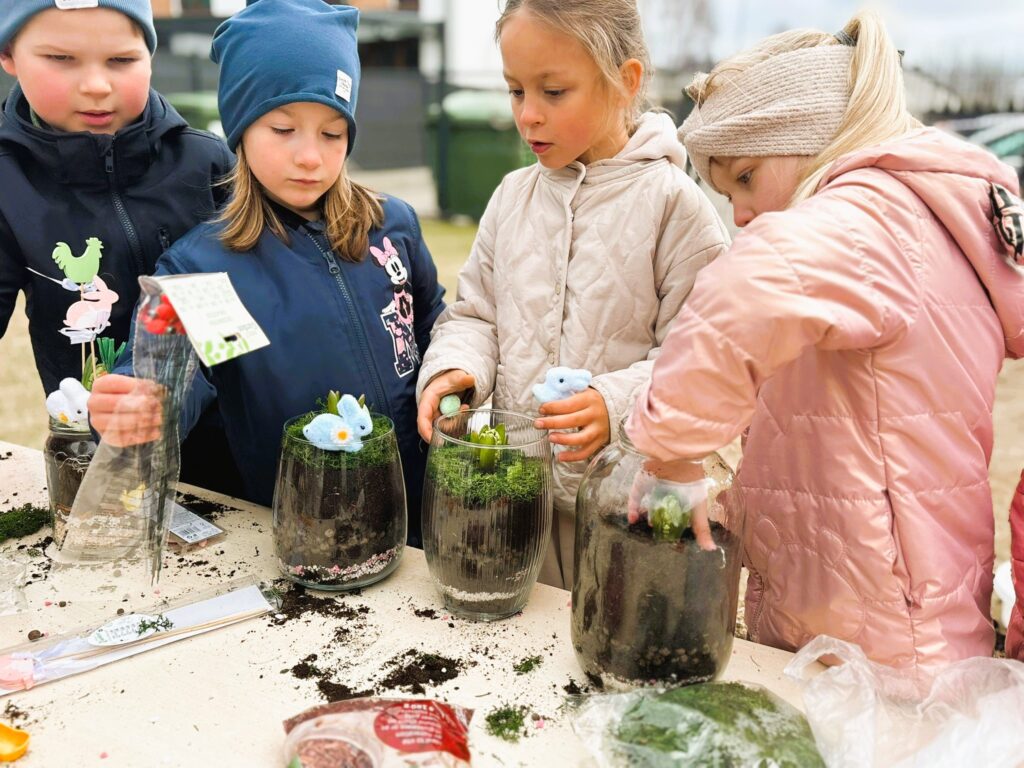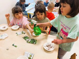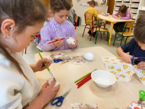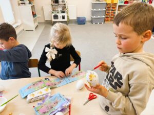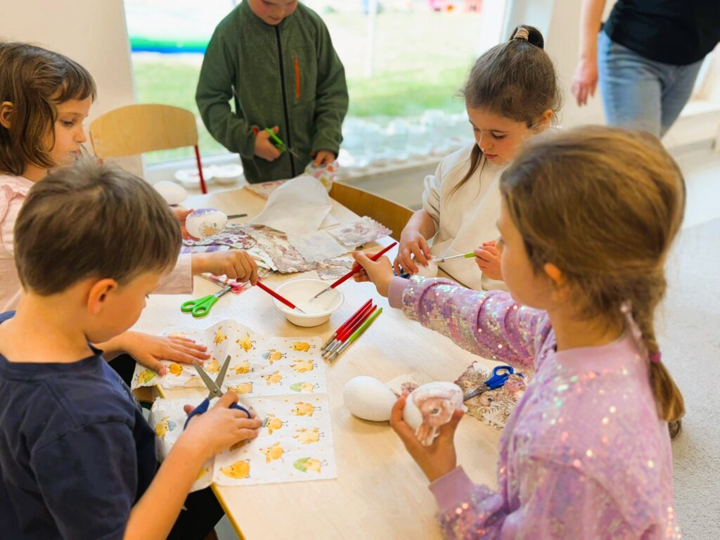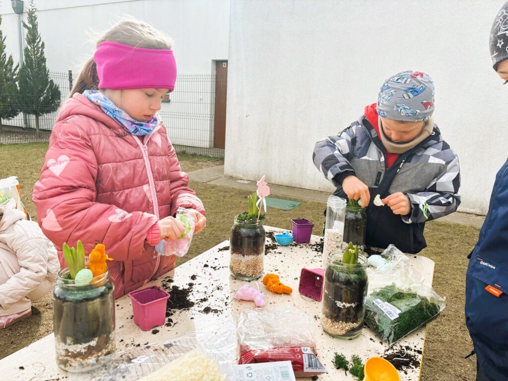 Miniony tydzień minął Bystrzakom w prawdziwie świątecznej atmosferze. Dzieci poznawały wielkanocne zwyczaje i tradycje, dekorowały babeczki na kiermasz wielkanocny i wspólnie stworzyły wyjątkową dekorację w szkle, która ozdobi wielkanocne stoły. Nie zabrakło również twórczych aktywności – dzieci układały kolorowe pisanki z darów Froebla, a także tworzyły własne pisanki metodą decoupage. Zasialiśmy również rzeżuchę, obserwując, jak każdego dnia rośnie i przypomina nam o wiośnie 🙂